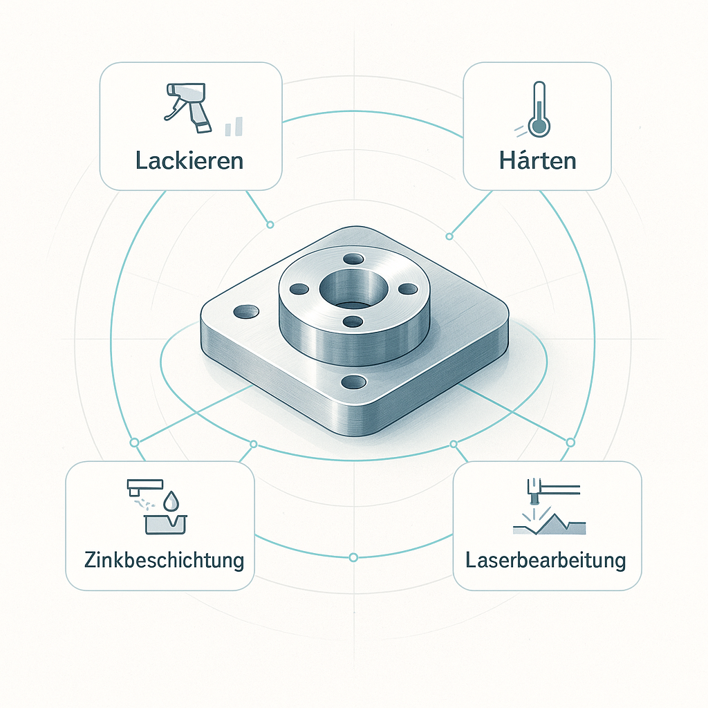 Damit ein Bauteil im Einsatz überzeugt, endet unsere Arbeit nicht mit der letzten Fräsbewegung. Je nach Anwendung übernehmen wir für unsere Kunden auch die passende Oberflächenbehandlung – technisch abgestimmt, terminsicher organisiert und qualitätsgesichert aus einer Hand.